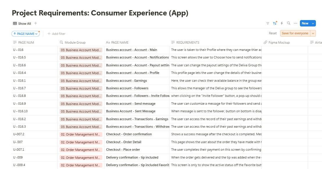 This processes is monumental for ensuring high quality and reduced cost integrations and development. Requirements are organized into "tickets" which include names, descriptions, links to design prototypes, screen designs, assets, module names and more. Tickets are then grouped into Sprints and exported for development RFPs. This modular process allows a micro-serviced based development approach module by module.