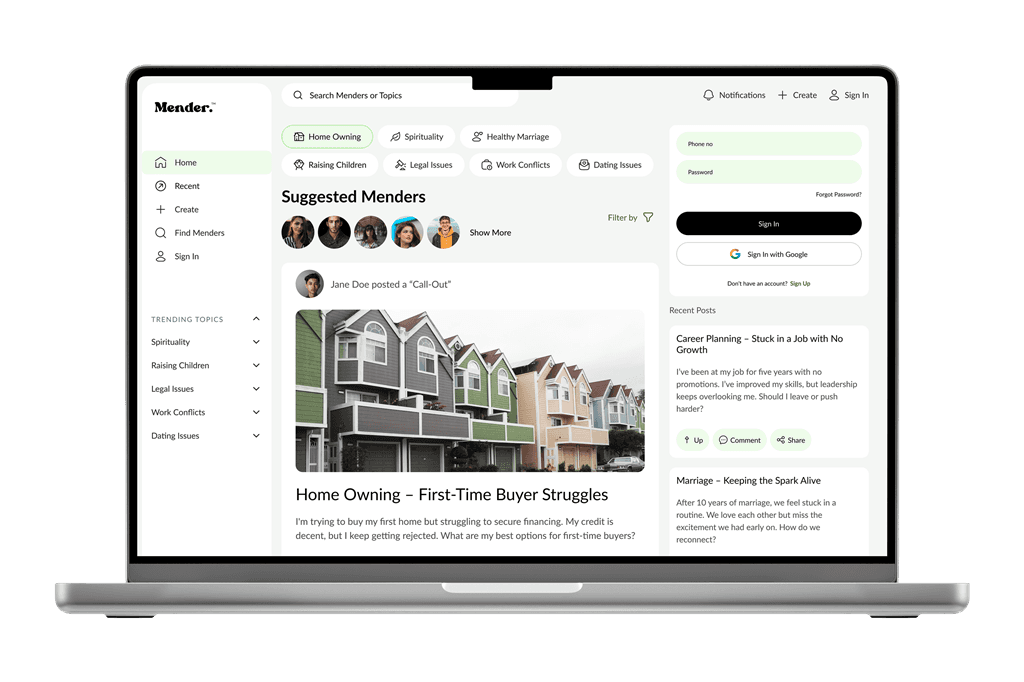 Menders is an innovative startup with a mission to connect individuals facing life’s challenges (“Mendees”) with a diverse community of problem-solvers, experts, and mentors (“Menders”). The goal is to create a safe, anonymous social platform where users can post their problems and receive free advice, solutions, or opinions from others. Additionally, the platform would empower experts to promote their paid offerings—such as online classes, books, or mentoring sessions—creating both a support network and income opportunities.
